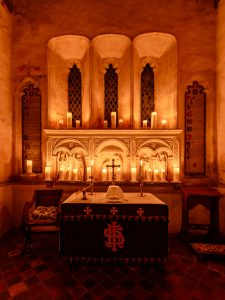 Originally a cell of St Peter’s Benedictine Abbey in Gloucester, St Nicholas church was ceded in 1157 to the Diocese of York and exchanged with the crown in 1547.  The Norman south aisle probably represents the original nave. The church was all but abandoned among its fields in 1852 and has been little altered since. It has medieval paintings of the Doom on the north wall dating to the early 15th century. They were whitewashed over in the English Reformation and conserved by Eve Baker in 1969. Scenes depicted include the Acts of Mercy and the Seven Deadly Sins. St Nicholas is unheated with no artificial lighting but there are wonderful summer and candlelit Christmas services.